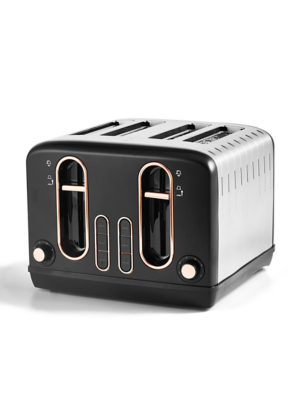 Black & RoseGold Stainless Steel 4 Slice Toaster Home at ASDA